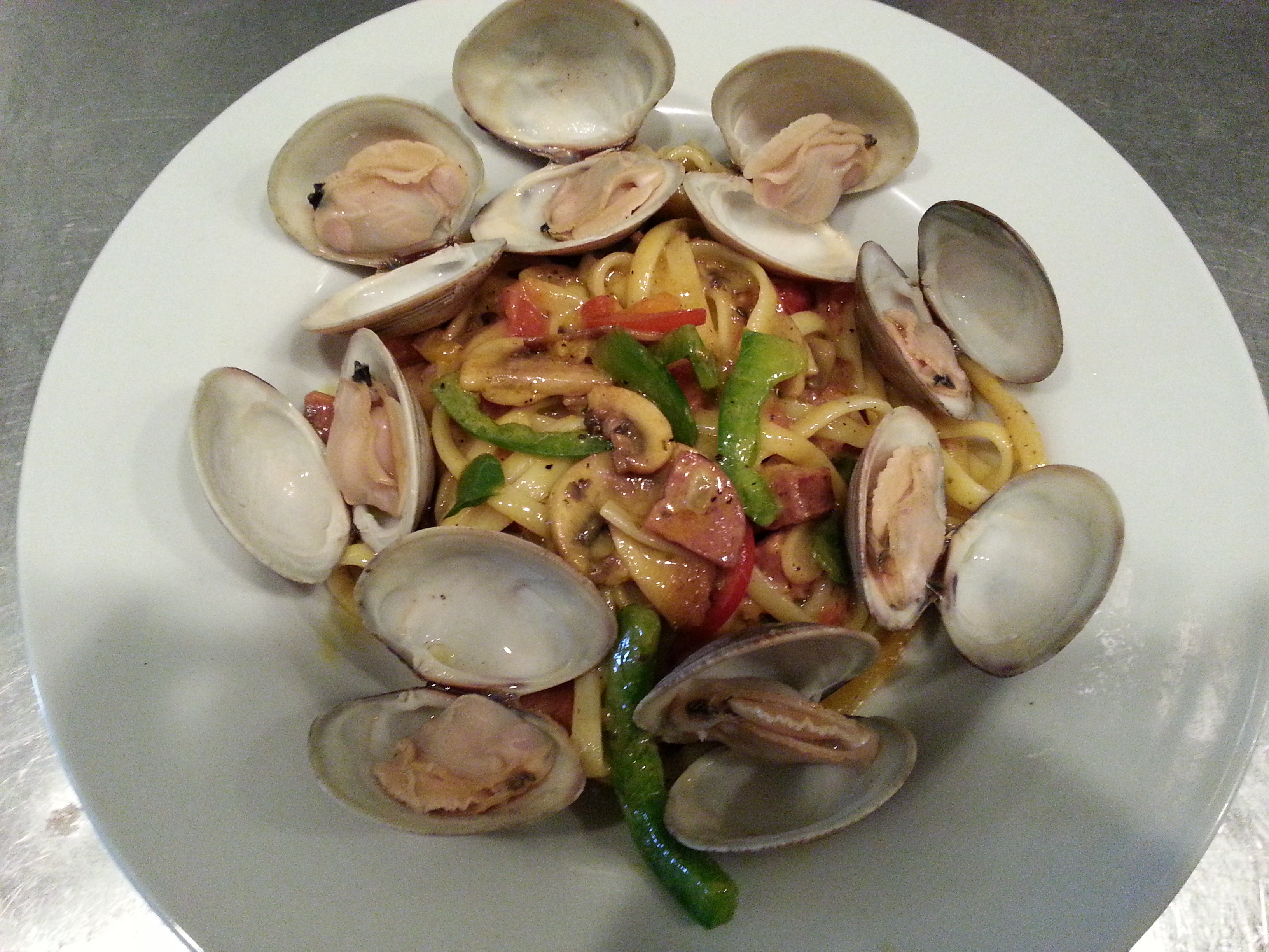 Gorgonzola Shrimp LinguineTomato, Spinach, & Green Onion in a Rosemary Infused Brandy-Lobster Cream