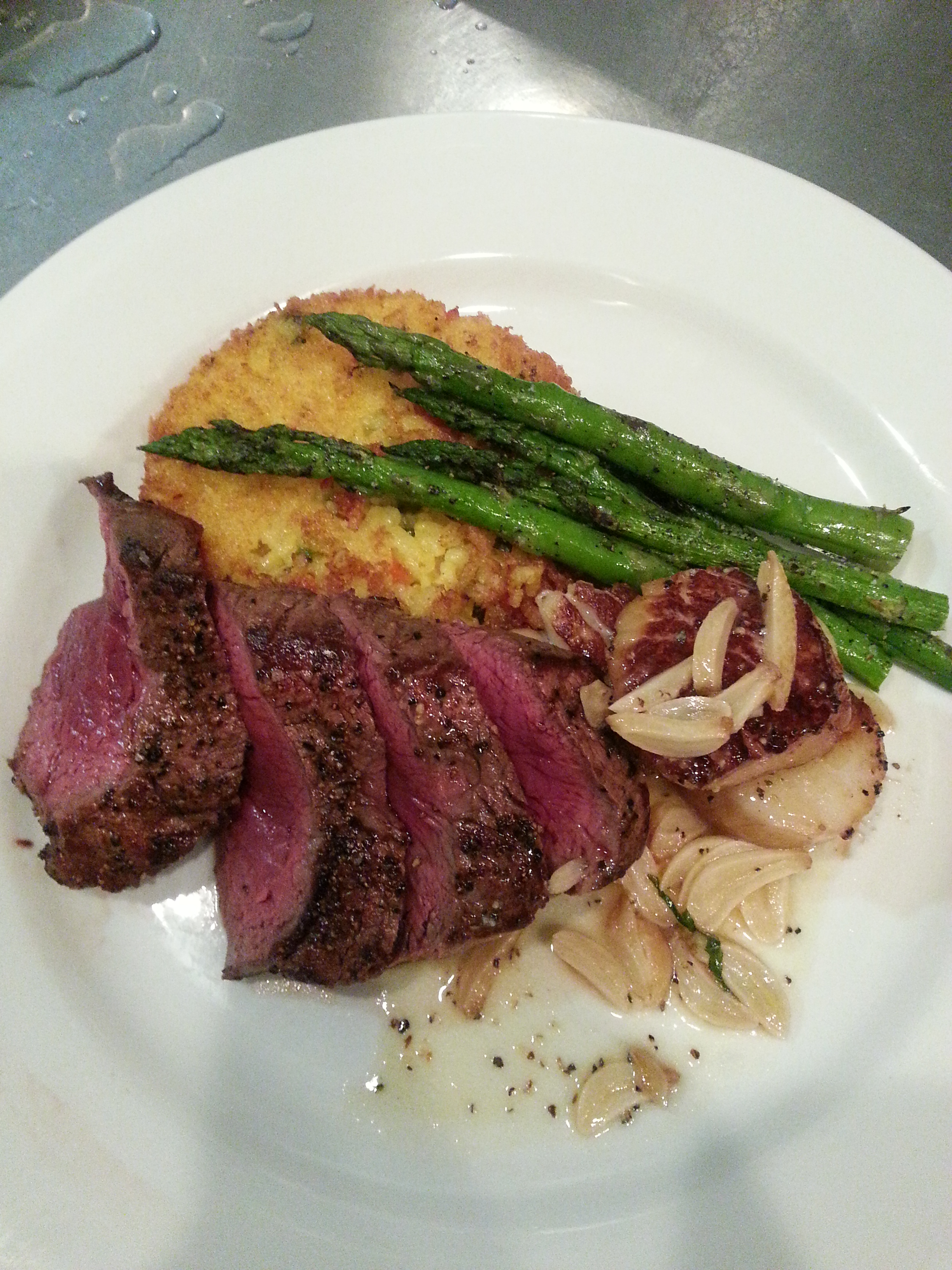 Garlic Potato Mash, Grilled Asparagus, Mushroom Demi Glaze